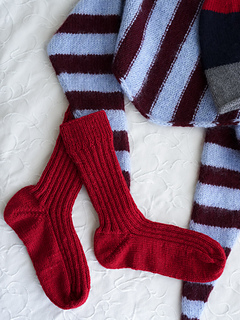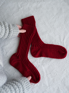 Weekend Socks are medium-length socks that are worked from the cuff down to the toes. The leg and instep stitches are worked in a 2x2 rib pattern, while the heel and sole stitches are worked in knit. Please also note that the heel is shaped with short rows, which create a beautifully contoured and comfortable fit around the heel. These socks are a perfect balance between classic structure and modern comfort, making them an enjoyable and rewarding project to knit.