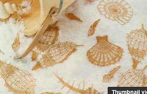 Three different seashell appliques, in gold thread.