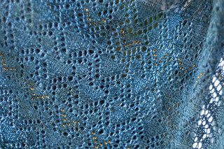 - Before knitting your project, be sure to test the colorfastness of your beads. String a few beads on some waste yarn, and soak for a few minutes to make sure that the beads don’t bleed onto the yarn, especially if you are using a white or light-colored yarn. If you are still concerned about the possibility of your beads bleeding, you may wish to spray block your project. When you are ready to block your finished shawl, pin your project to shape, and spritz it with cold water until wet. Adjust the pins as needed to achieve your desired measurements, spritzing as needed to keep your project wet. Then let dry.