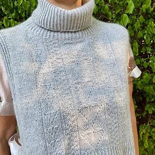 In ultimo si riprendono le maglie lungo lo scollo e si lavora un alto collo dolcevita a coste ritorte.
