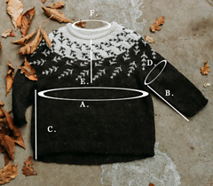 B - Sleeve length: 23 (24, 24, 26, 26, 28, 29, 30, 31) cm / 9 (9.5, 9.5, 10.25, 10.25, 11, 11.5, 11.75, 12.25)”