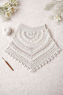 The skirt is worked in two separate pieces—front and back—which are crocheted flat in rows and later joined by sewing the side seams. The upper portion of each piece is shaped as a semi-circle, gradually transitioning into a distinctive teardrop form toward the hem.