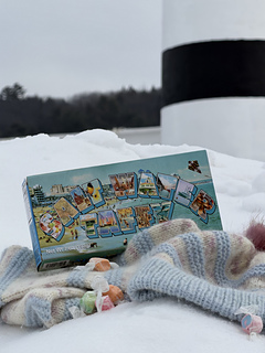 This hat pairs perfectly with the Saltwater Taffy Cowl.