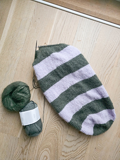 MC: 1 (1, 2) ball(s) of Sandnes Garn Sunday (100% merino; 235 meters / 257 yards per 50 g), shown in the colorway 9071, and 1 (2, 2) ball(s) of Gepard Kid Seta (70 % kid mohair, 30% silk; 210 m / 230 yards per 25 g), shown in the colorway 886.
