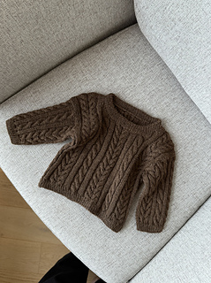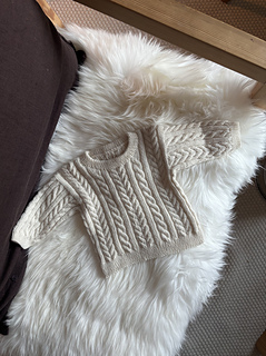 The Samuel Sweater came to life when I wanted to create an extra special gift for a newborn. Countless swatches with different cables were knitted, washed, and blocked to find the right combination. The result was a sweet little cable sweater with an oversized fit, making it easy to put on and comfortable and roomy for the little one.