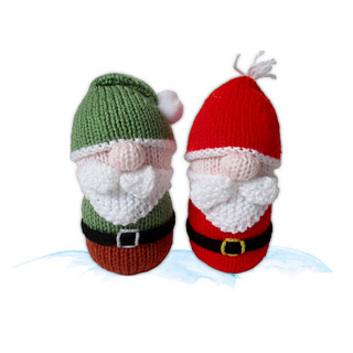 Santa and Gnome are quick to knit toys. Use them to decorate your home for Christmas, or hang on your tree. These are worked predominantly in stockinette, with knitted bobble noses. Both mostly follow the same pattern, using different colours and with two different hats. Designed by Amanda Berry @fluffandfuzz, the toys are knitted in acrylic DK yarns on single pointed needles (not in the round).