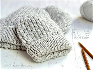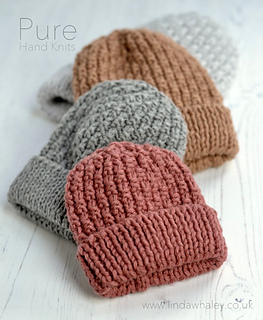 The cosy hats shown here have been knitted in a variety of Chunky (US Bulky) yarns: