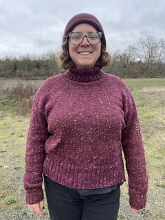 Sassafras Pullover is a worsted weight turtleneck sweater with a wide split hem. My intention for this design was to create an everyday sweater for winter that is perfectly warm, cozy & cute! This pattern is gender inclusive with two fit types and also includes optional bust darts. It has hybrid drop shoulder/set-in sleeve construction, so that it can be slightly oversized while still having an excellent fit. It’s worked top down, so it’s easy to modify the body and sleeves to your ideal length.