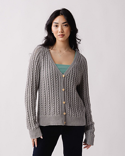 Elegant and classy, Saturday Stroll Cardigan features an allover cables and lace texture in a classic V-neck cardigan style. Worked in pieces and seamed.