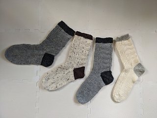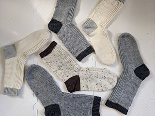 Lasten koot on suunniteltu Nalle-langalle ja aikuisten Seitsemälle Veljekselle. Voit korvata ohjeen langat myös jollakin muulla sport (lasten koot) tai aran (aikuisten koot) -vahvuisella langalla. Puikko- ja/tai sukan kokoa säätämällä onnistuu myös lasten sukat aran -vahvuisesta ja aikuisten sukat sport -vahvuisesta langasta.
