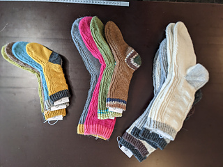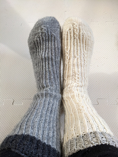 Aikuisten sukat on neulottu tarkoituksella hieman normaalia langanvahvuudelle suositeltua puikkokokoa pienemmillä puikoilla, ne on suunniteltu jalkaan hyvin istuviksi ja jämäköiksi. Sukat saavatkin heti valmistuttuaan tuntua jaloissa tyköistuvilta. Vähän aikaa käytössä oltuaan ne kuitenkin yleensä löystyvät hieman. Jos haluat sukistasi löysemmät valitse isompi koko tai puikko.