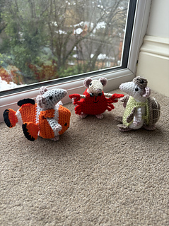 This pattern is for the mouse and its 3 sea creature costumes – a crab, a clownfish & a turtle!