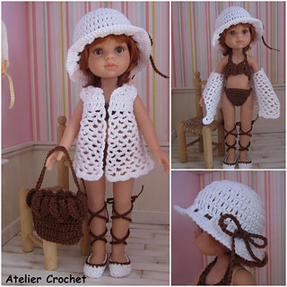 Vous achetez un fichier PDF de 9 pages contenant les explications de la tenue : maillot de bain, chapeau, sac, chaussures et gilet