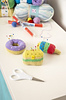 This is a pattern for three seaside themed pin cushions, originally published in Your Crochet and Knitting. The yarn used is a kit yarn and not commercially available. Suggested yarn alternative has been listed. Doughnut, lolly, treasure chest. You will also need toy stuffing, a small piece of felt, bugle beads, card.