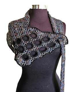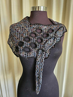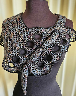 Unusual shaped scarf that starts with a decorative bodice and