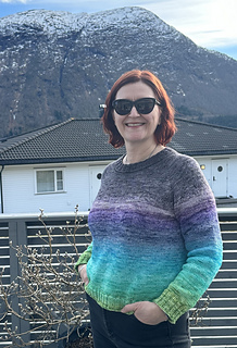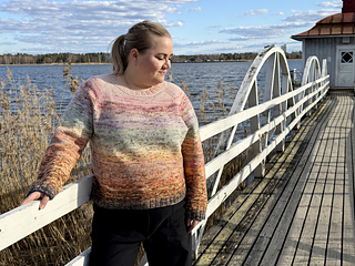 The colorful sample is worked in Camijo Knit Advent calendar minis from 2025 together with a few other leftover sock yarns (fingering weight held double). The brown sample is worked in Knits by Cindy Ekman Alpine Merino in a colorway Olive. Green sample is worked in Sandness Garn Sunday (100% merino, 130 m / 50 g) in color 9071 held together with CamijoKnit silk mohair (64 % kid mohair, 36 % silk, 420 m / 50 g) in colorway Moss.