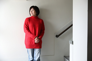 前後身頃を別々に往復編みで裾から肩まで編んだあと、