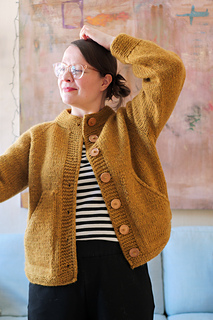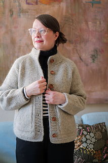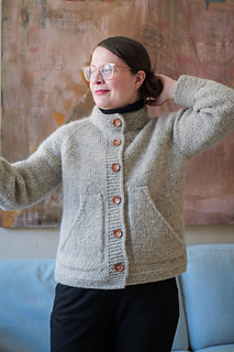 The Selma Jacket is a cozy and laid-back jacket that I initially designed as a coat featuring spacious pockets for comfortably warming your hands. This jacket is worked from the top down, seamlessly with raglan increases, and the button bands are conveniently knitted at the same time as the body, eliminating the need to pick up stitches separately. The jacket offers a relaxed fit, allowing room for layering underneath, but if you prefer a snugger silhouette, you can knit it with less ease.