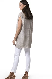 This versatile duster can be worn in either of 2 ways – worn long as a cocoon-style coat or turned upside-down to wear as a tunic-length draped vest with wide-lapels. Either way, Shadow’s textural fabric knit in cotton yarn RIPPLE, makes this a show-stopping all-season layering piece.