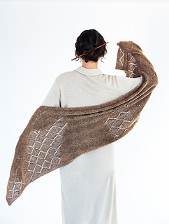Long scarf in a simple lace pattern. Knitted in one strand of Tvinni and one strand of Silk Mohair.