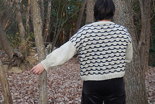 Knit from hem to underarm with working Shiranami pattern in round. Separate front and back at underarm, then work flat to shoulder. After grafting shoulders, pickup stitches for sleeves and neckline and knit in round.