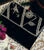 Flowers and trim applied to black velvet, instructions for sewing purse included.