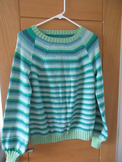 This is a pattern for a simple raglan jumper, originally designed for Scheepjes. It is worked in stocking stitch in Downtown yarn with rib edges in Metropolis. It would be fine for a beginner.