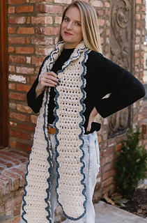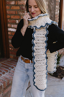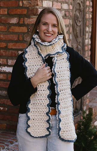 The Simple Scallop Scarf is an easy crochet scarf pattern designed for confident beginners and anyone looking for a cozy, fast project. Made with bulky weight 6 yarn, this long, soft scarf works up quickly and features a charming scallop edge highlighted with a contrasting border for a clean, modern finish. This crochet pattern includes a full video tutorial and photo aids, making it easy to follow and enjoyable to crochet.