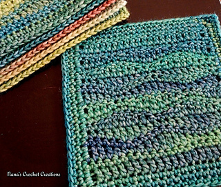 Using self-striping yarn yields a beautiful result. Squares worked up in a solid color are just as eye-catching. ~