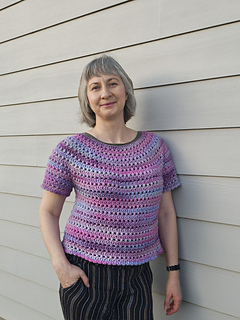 Top worked in one piece from the neck down: Yoke (Rounds), Torso (Rounds) Sleeves (Rounds).