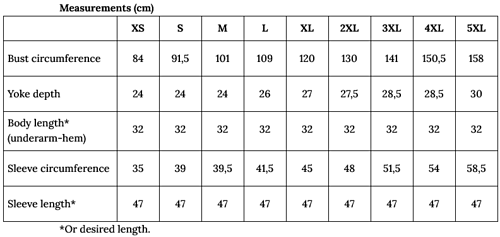 Choose a size by measuring the widest part of your bust and adding the recommended ease to it.
