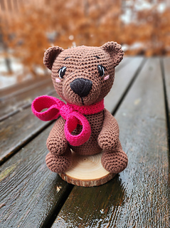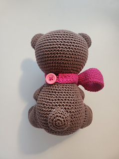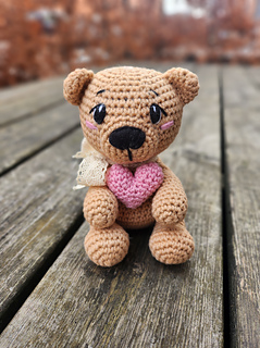 This pattern consists of 8 pages of detailed description in pdf format. The pattern includes instructions to make a larger as well as a smaller sitting bear. There are a lot of photos to help you with the various parts of the bears.