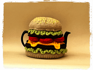 This listing is for the knitting pattern only, so you can knit your own delicious cheeseburger tea cosy.