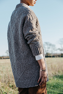A simple silhouette becomes the canvas for textures and lines of twisted stitches. Easy to wear and uncomplicated to knit. The self-finished front edge continues around the neck-hugging collar. Knitters experienced with steeks may want to knit this one in the round, with steeks for the front opening and armholes. For the rest of us though, the pattern is written flat, in easy-to-manage pieces.