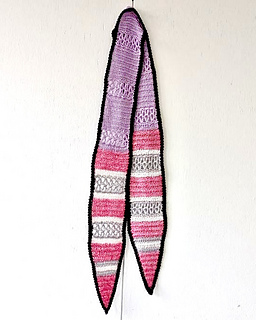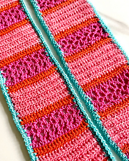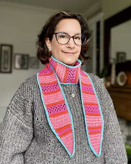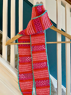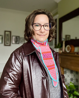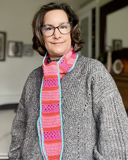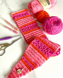 This slim, lightweight scarf is the perfect project for confident crocheters who love playing with colour without committing to a large garment. Featuring playful stripes and textured stitch sections using the simple yarn over slip stitch technique, it’s ideal for experimenting with bold colours, using up leftover yarn, or stepping outside your usual “safe” colour choices.