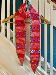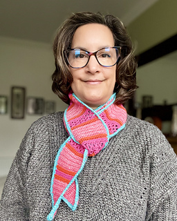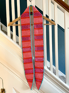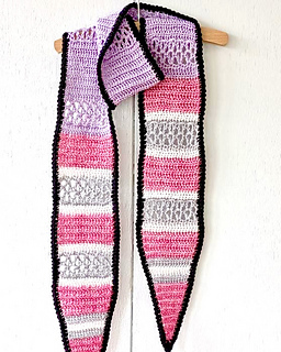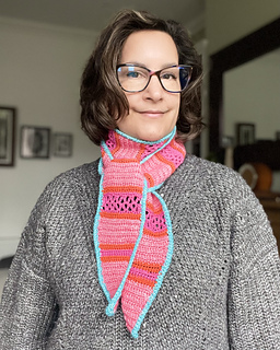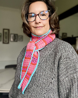 Quick to crochet and endlessly adaptable, the Skinny Dip Scarf can be styled loosely tied at the neck, wrapped once for a hug around the neck, or worn as a statement accessory to lift even the simplest outfit. Change the colour order, adjust the length, or go all-out with contrast — this pattern is all about creative freedom.