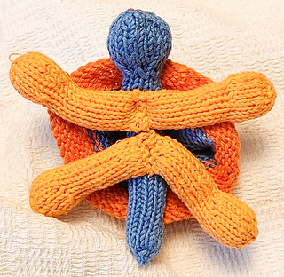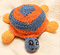 Sköldpaddan Sasan är en mjuk liten figur med rund kropp, fyra små ben och ett tvådelat skal. Kroppen stickas runt i ett stycke, benen stickas separat i par och sys fast innan skalets två delar monteras runt kroppen för en tydlig och stabil form.