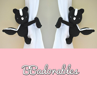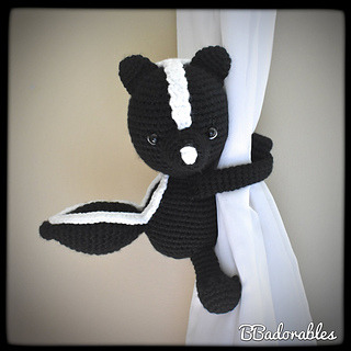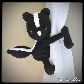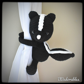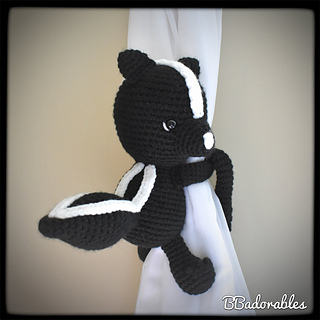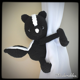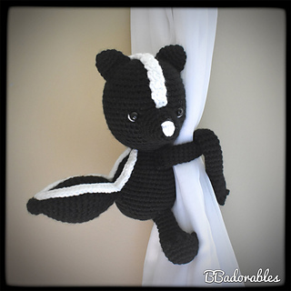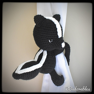 Skunk curtain tieback© Copyright 2020 BBadorables – All rights reserved. This pattern is for personal use only. This pattern or parts of it must not be reproduced or published (printed or online), altered, resold or used for commercial purposes.