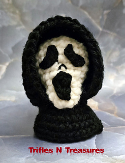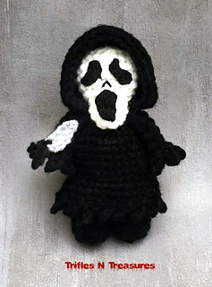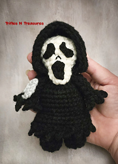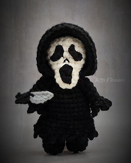 Completely crocheted-you won’t need felt or glue, with just a little bit of sewing, he works up fairly quick, so you can create an army of Slashers in short order!