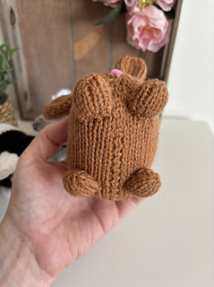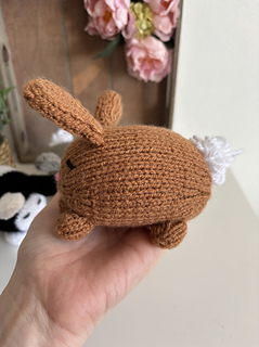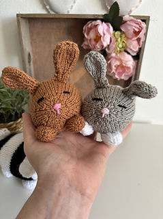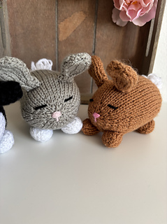 Everything is knitted flat and sewn together. Your finished bunny will measure around 10cm tall and 12cm long. This is perfect for beginner level knitters.