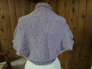 In grey or lavender this is pretty for an elderly lady, and one of its comforts is that it does not slide off the shoulders. The shawl with sleeves is a warm but light weight wrap which stays in place on the shoulders and is never in the way.