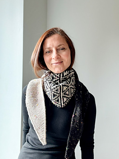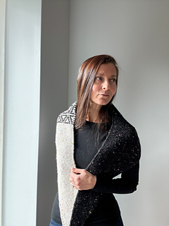 Triangles are bold, easy to work and classic - this little scarf gives you a bit of everything - mosaic and simple TV knitting. Worked in two contrasting colors, it’s a great way to spruce up your outfit and Tweed is always a classic choice!