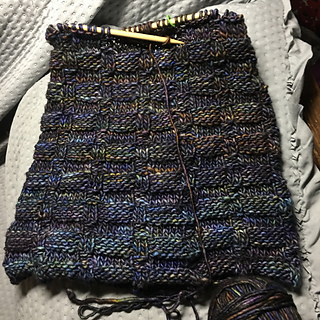 The cowl is tapered for a nice fit, and uses a simple textured stitch - it is worked in the round.