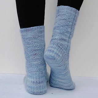 They have a heel flap and gusset; the heel flap is created with slip stitches to give a comfortable, cushioned heel. The pattern is written for four sizes from 8 - 9½ inches (20-24cm) foot circumference.