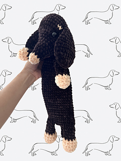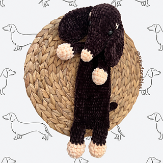 Snickers Dachshung Snuggler © 2026 BBadorables - All rights reserved. This pattern is for personal use only. This pattern or parts of it must not be reproduced or published (printed or online), altered, resold or used for commercial purposes. You can sell items made from this pattern, provided that they are handmade by yourself in a limited number and you give credit to me as the designer. Thank you!