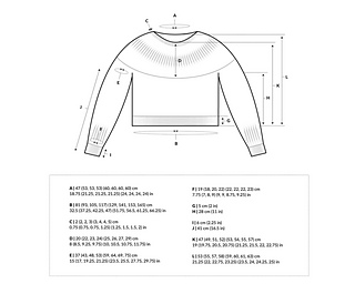 on a 160 cm (5’ 3”) tall model with 84 cm (33 in) bust measurement. For more of the finished garment measurements, please refer to the schematic provided.