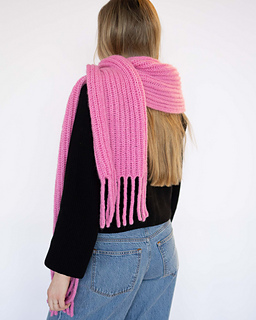 Knit in Originally Lovely Fluff and designed with an oversized silhouette, this scarf offers both warmth and modern style for cold winter days.