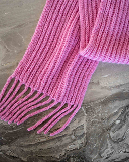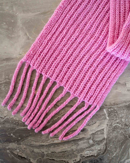A lofty & cozy scarf knit in fisherman’s rib stitch. This scarf has a unique construction with edging and fringe worked right alongside the scarf itself, making it an engaging project with very little finishing.