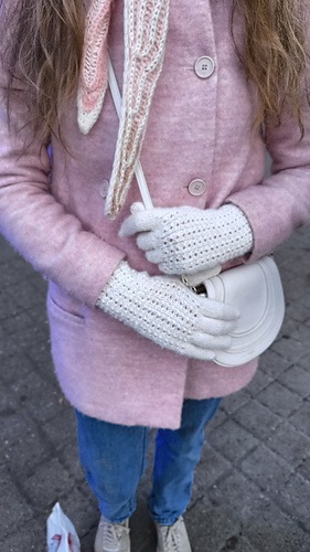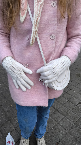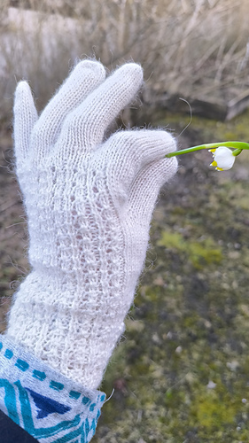 These gloves are inspired by old-fashioned, classic knitted gloves. They are worked from the cuff upwards. Each glove is worked slightly differently so that it fits the right and left hand respectively.