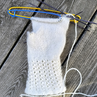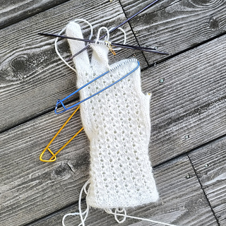 The gloves are worked using double-pointed needles. Magic Loop can also be used, but this method is not described in the pattern.
